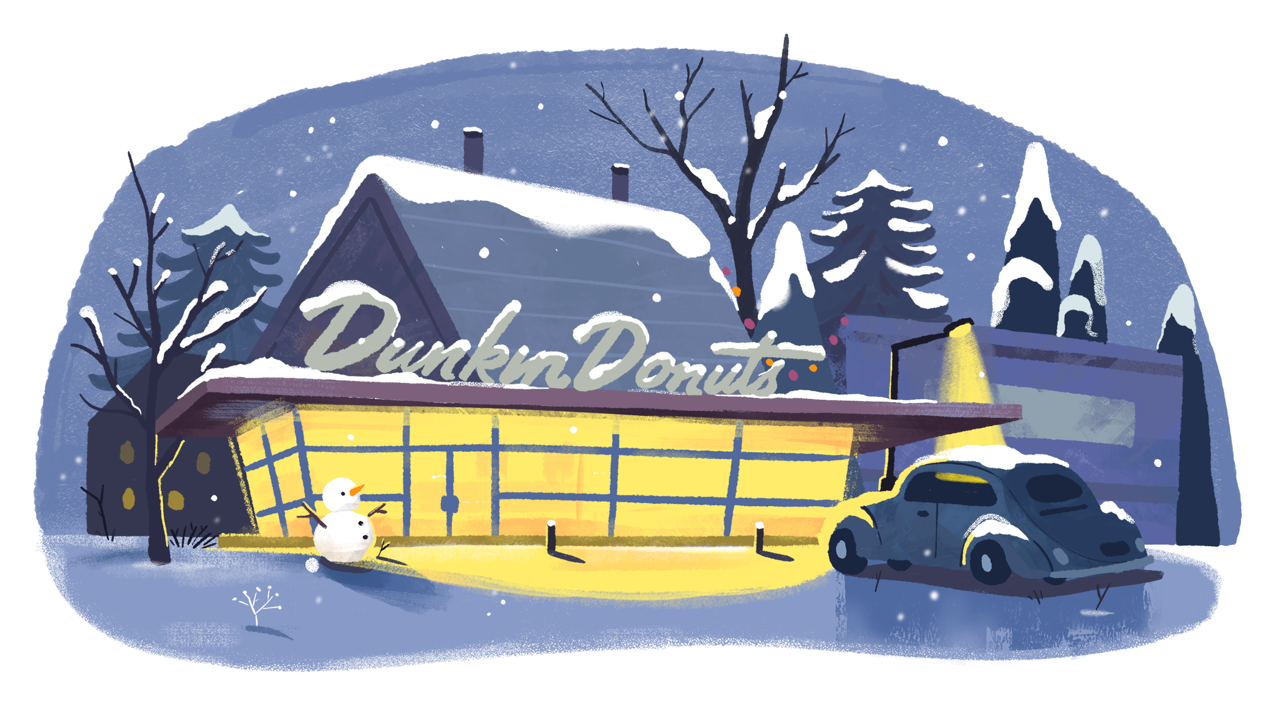 At BUCK, I worked on Dunkin’s MUNCHKINS Holiday campaign, focusing on illustration and visual development. I explored concepts for the holiday gift cards, illustrated storybook moments, developed character explorations, and contributed to the packaging visuals for the seasonal cups and donut boxes.